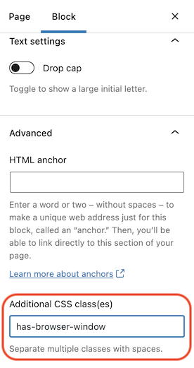 In the screengrab above we've added the has-browser-window class.